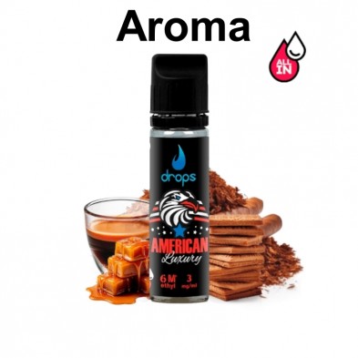 Drops All In Signature American Luxury 10ml (Longfill) es un e-liquid premium con una elaborada mezcla de tabaco, caramelo, café y galleta, que ofrece una experiencia intensa y auténtica, muy cercana al sabor de un cigarrillo tradicional. Ideal para quienes buscan un golpe de garganta sólido y una combinación aromática compleja.