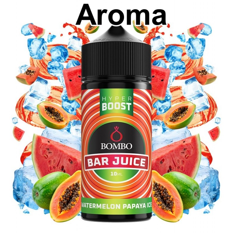 El aroma Watermelon Papaya Ice de Bombo Bar Juice Hyper Boost by Bombo combina la jugosidad refrescante de la sandía con la dulzura tropical de la papaya, logrando una mezcla exótica y equilibrada. Un sabor frutal y veraniego con un toque helado que aporta frescura en cada calada.