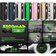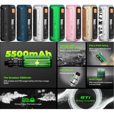 El Armour Ultra de Vaporesso es un mod de alto rendimiento equipado con una potente batería interna de 5500 mAh, capaz de ofrecer una autonomía similar a la de dos baterías 18650, pero con un diseño más compacto y resistente. Su estructura ha sido diseñada para soportar agua, polvo y caídas, contando con certificaciones de nivel militar que garantizan su durabilidad en las condiciones más exigentes.