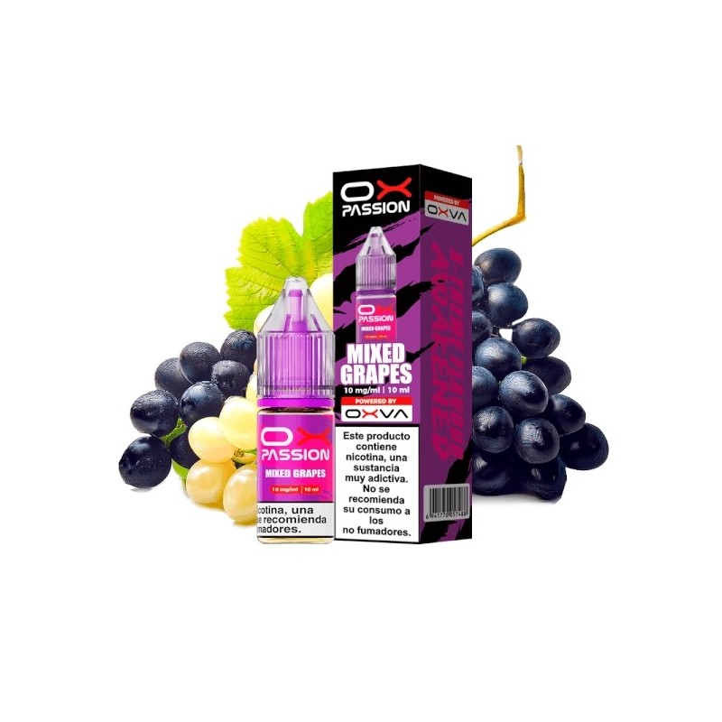 Oxva Ox Passion Salts Mixed Grapes 10ml, la mezcla perfecta de uvas verdes y rojas proporciona un equilibrio ideal entre dulzura y acidez, creando un perfil de sabor vibrante y jugoso.